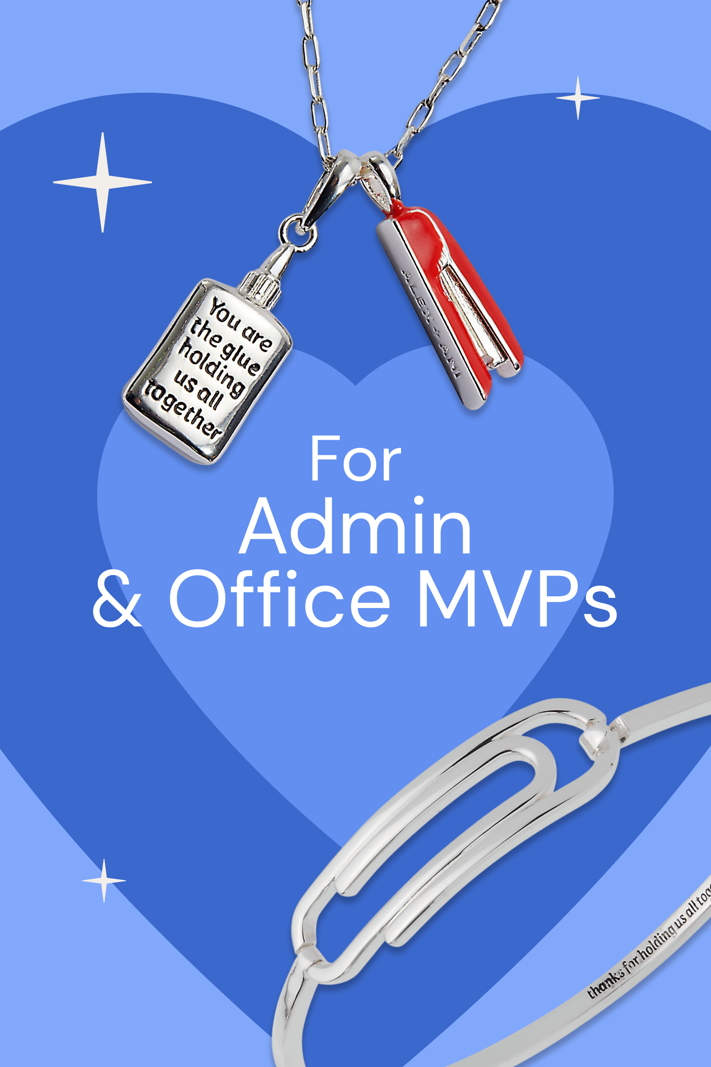'You Are The Glue Holding Us All Together' Glue & Stapler Charm Necklace