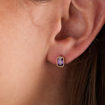 February Emerald-Cut Birthstone Stud Earrings