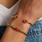 Celebrate the beauty of nature with this charming flex cuff featuring dimensional metal sunflowers on each side, framing a warm amber cabochon at its center. The flexible design ensures a comfortable fit for all wrist sizes, while the intricate sunflower details bring a touch of botanical elegance to your everyday style. Perfect for nature lovers and those who appreciate meaningful, artisan-crafted jewelry.